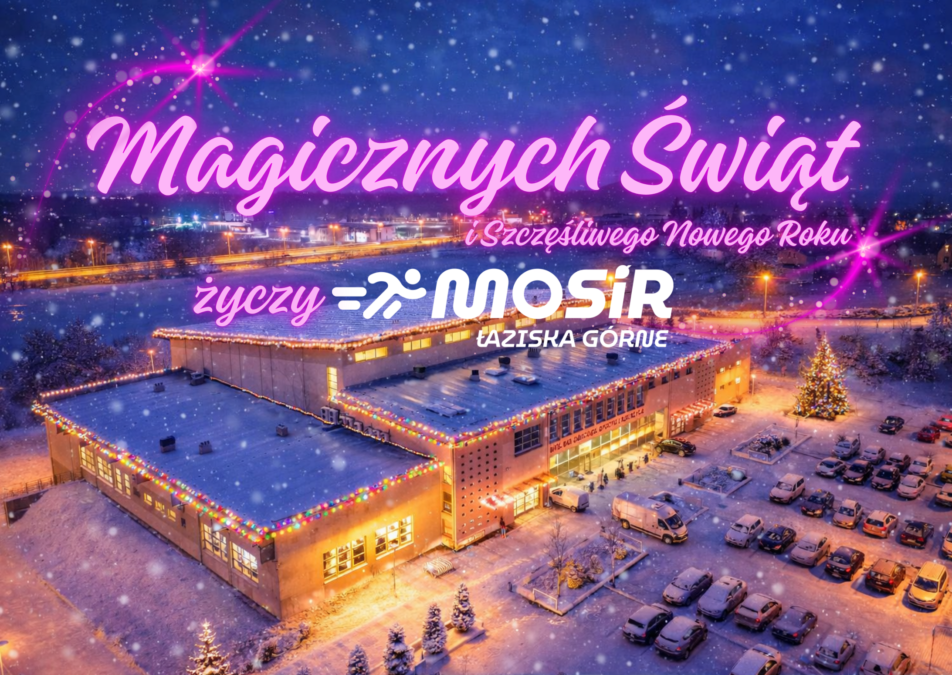 Wesołych Świąt i Szczęśliwego Nowego Roku dla całej sportowej rodziny MOSiR 🎄✨ Dziękujemy, że jesteście — na treningach, zawodach, trybunach i w tych wszystkich momentach „pomiędzy”. Dziękujemy za zaangażowanie, wsparcie, uśmiechy i za to, że razem tworzymy coś więcej niż tylko miejsce do trenowania.
